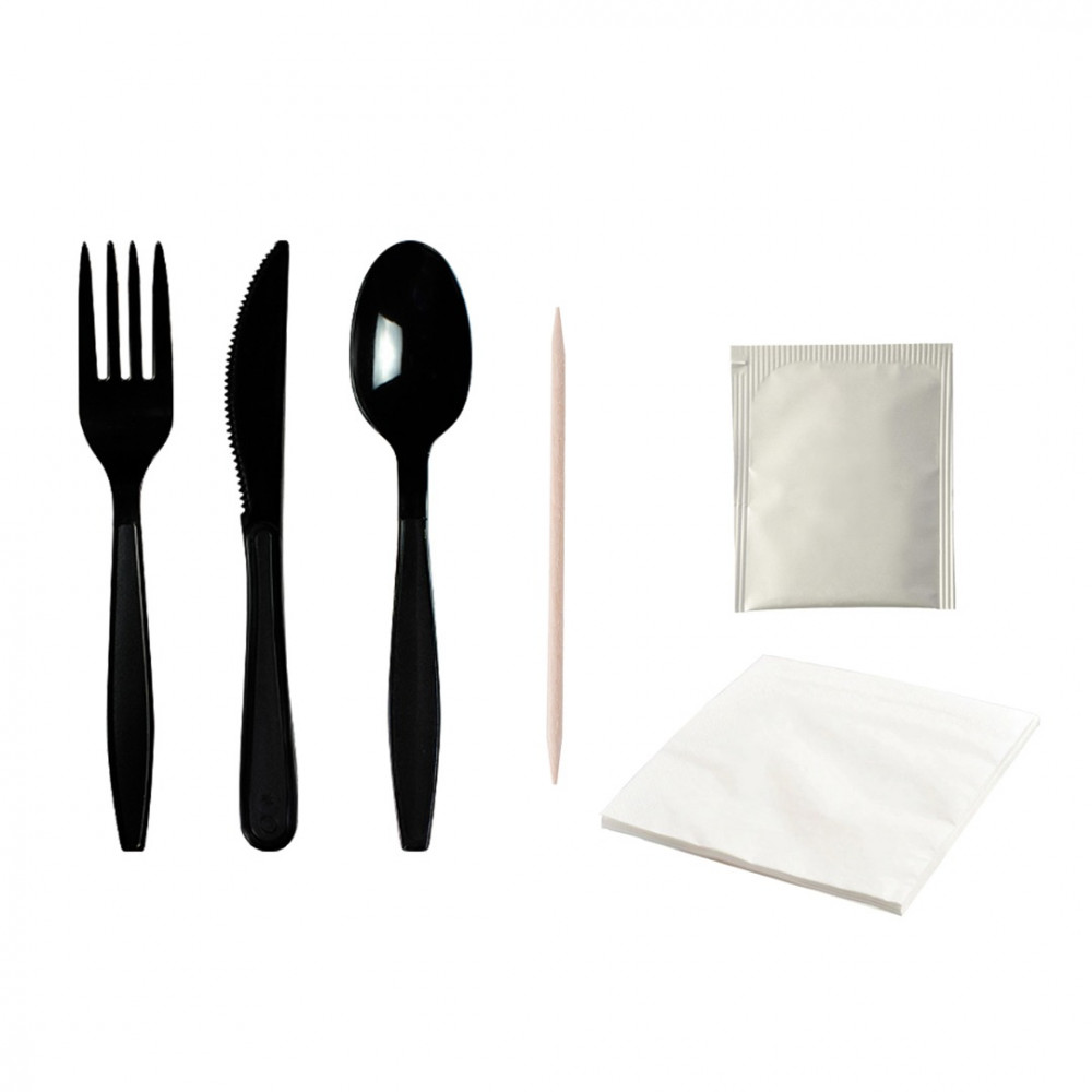 شوكة وسكين اسود مع مناديل سفرة شد 500 حبة مغلفة